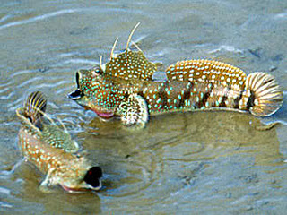 Expertise of fish on this one, but can survive long in the land (90% of time spent on land), gelodok fish can climb the roots of mangrove trees, jump far, and 'walk' through the mud. The base of a strong muscular chest fins, so the fins can be bent and arms to serve as creeping, crawling and jumping.