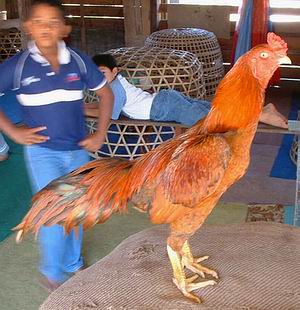 1960 and onwards some rich Indonesian cockers Thailand Game began importing directly from Thailand. But very quickly the import is stopped due to price increases. Breeding of Chickens Hower successfully resumed Bangkok. Weight 2.5 to 4 kg (5.5 to 8.8 Kg). Bangkok chicken fighting in the natural spurs only. Bird: Harahap Mr.Adek (Indonesia)