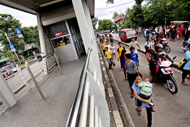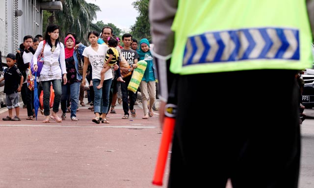 Ragunan visitors walk close beside bus stops. The closure of many complaints about bus users TransJakarta. For the passengers have to walk no less than 2 km.