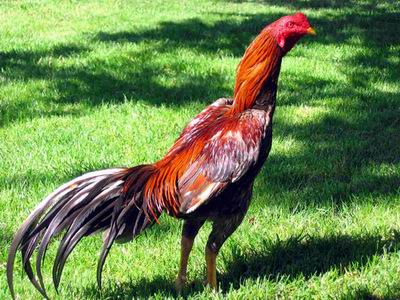 Game according to the Thailand Burma cockers Gaichon similar to Thailand but generally lower placed. The birds of Burma increasingly popular as well and they already exist in the U.S. and Europe. It's against the birds in the natural spurs. Breed features: small head, peacomb, short compact body, long tail is well developed and middle-placed. Available in various colors. Weight 2.5 to 4 kg (5.5 to 8.8 Kg).